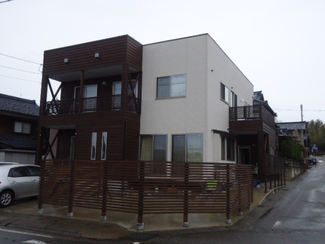 木が好きなもんで、木材をできるだけ正面外壁にかぶせました。