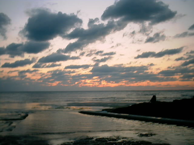 三国土木事務所での打合わせ終え、海岸に出た。 落ちる夕陽に染まる水平線からの風は冷たい。